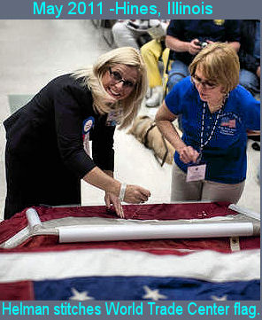 Hines, Ill. Stitching World Trade Center Flag